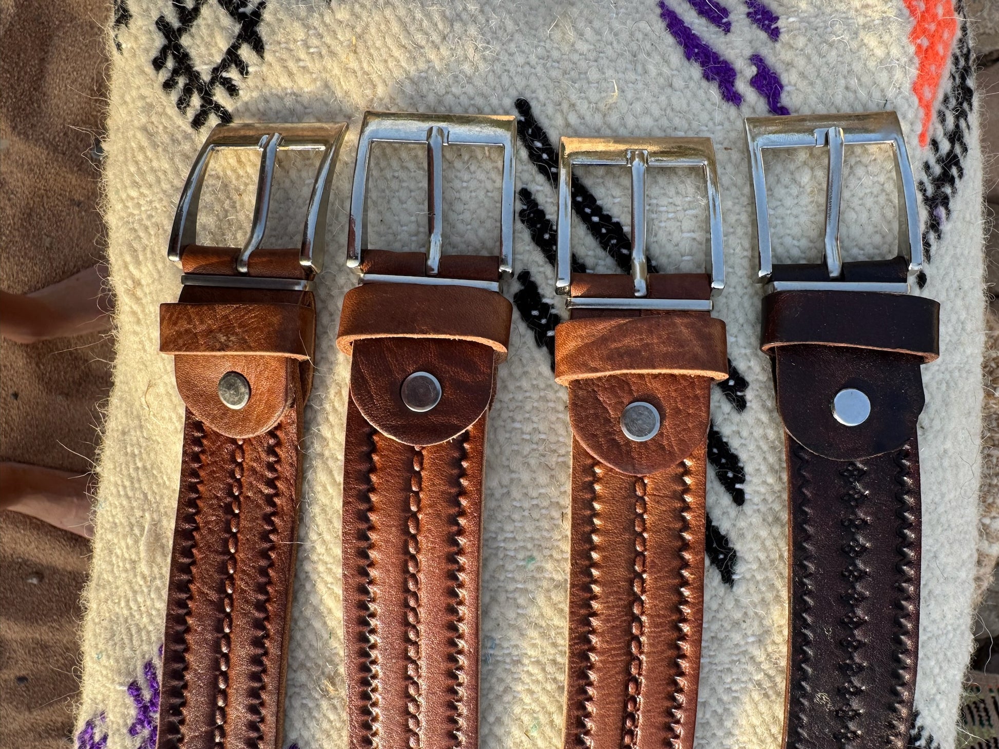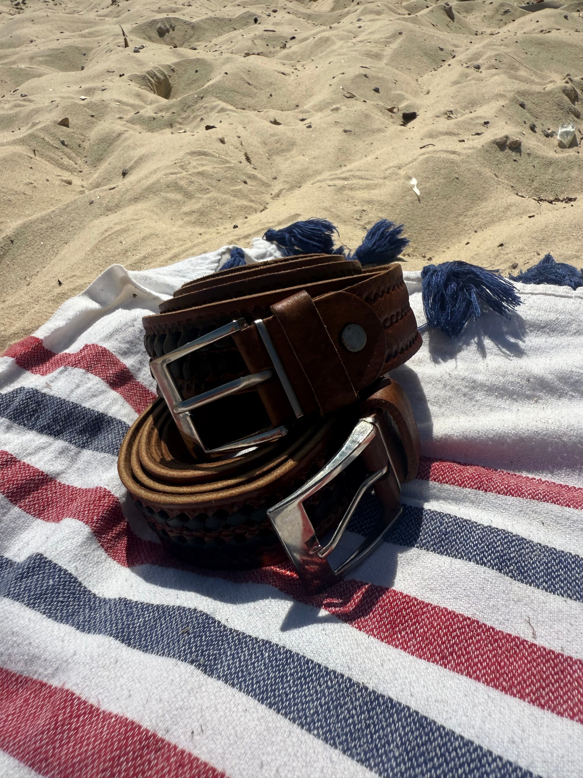 Meet the Jamal Noir featuring brown stitching. Designed to spark conversations and attract compliments, this traditional braided belt is handmade in Morocco by Abdul from cowhide and camel leather.